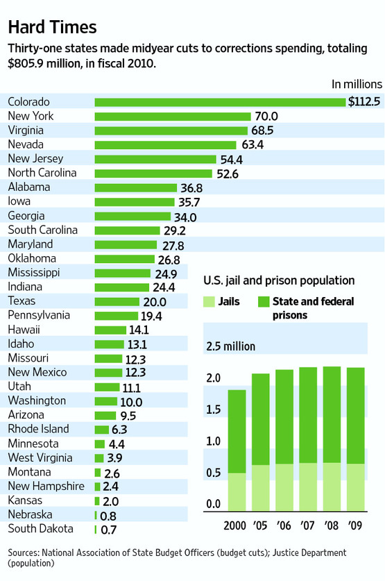 In Florida, Republican Governor Rick Scott on Monday introduced a budget that would slash $500 million in corrections spending, in part through staff cuts. New Hampshire and South Carolina have both changed their laws in an effort to lower recidivism and cut prison populations.