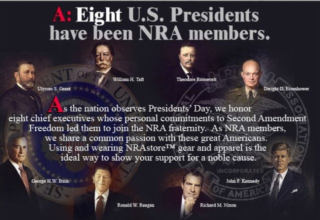 This entry was posted in 2nd Amendment, Politics and tagged 2nd Amendment, Gun politics, National Rifle Association, NRA, Presidents, Presidents Day, Pro-Gun Rights. Bookmark the permalink.