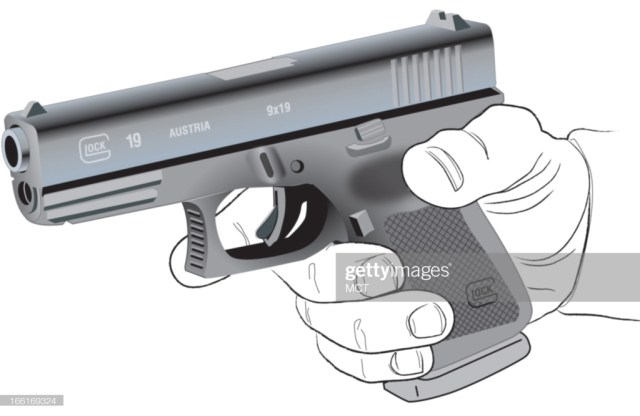 USA – 2021: Lee Hulteng illustration of the compact Glock 19 semi-automatic pistol. via Getty Images)